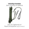 Die kompakte Kurzleine passt perfekt in die Jackentasche, und ist so als Notleine schnell zur Hand. Sie eignet sich aber auch als Kurzführer und kommt bei der Floxik Schleppleine als Haltegriff zum Einsatz (Schleppleine seperat erhältlich)