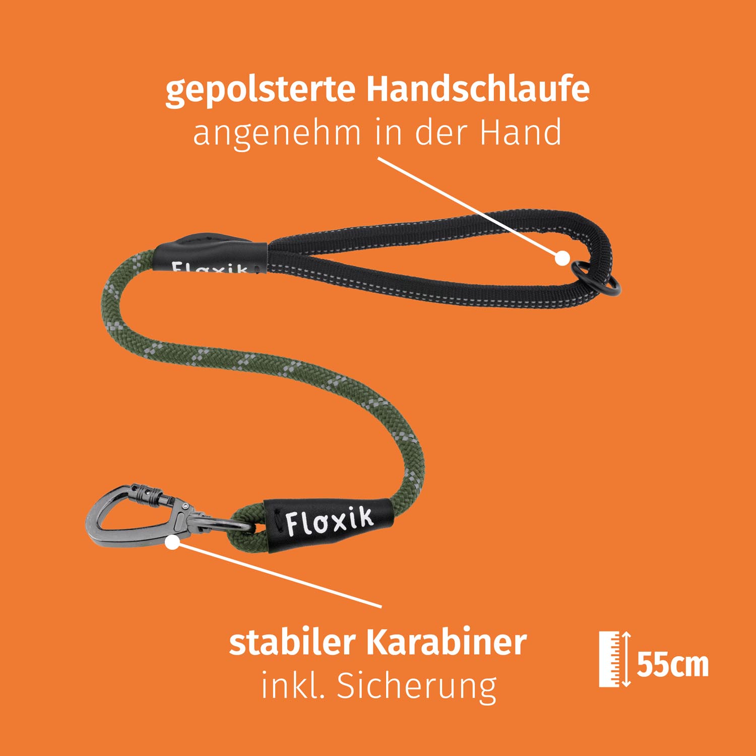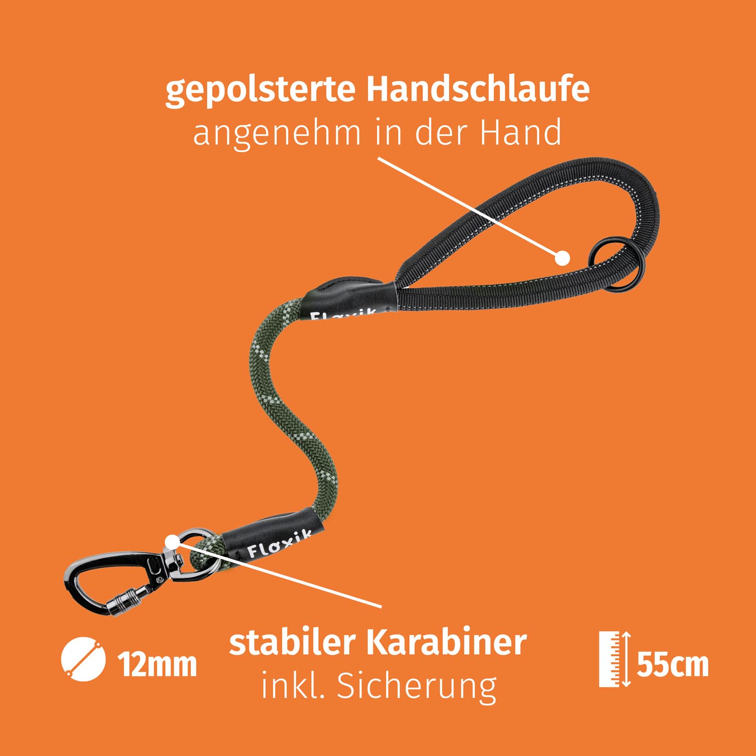 Floxik Kurzführer für Hunde orange | Kurzleine 0,55 m lang mit gepolsterter Handschlaufe und geringem Gewicht | geeignet als Notleine / Trainingsleine