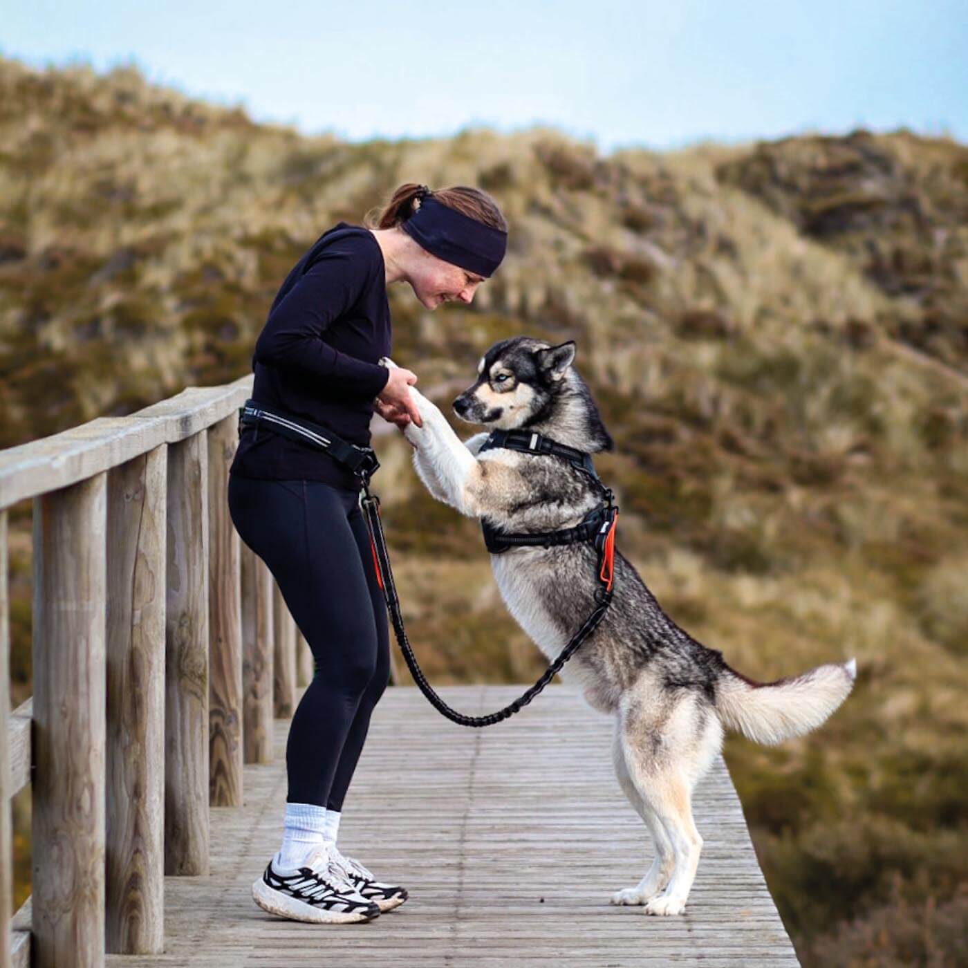 Mit der Floxik Joggingleine genießt du maximale Bewegungsfreiheit beim Laufen, Wandern oder Spazieren – ideal für aktive Hundebesitzer mit mittelgroßen und großen Hunden.